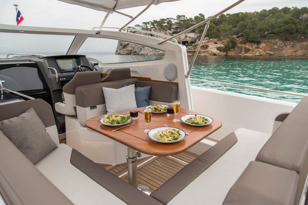 Was die Ausstattung anbelangt, basiert das bahnbrechende W9-Modell, das auf der boot 2018 in Düsseldorf seine Weltpremiere feierte, auf einem neuen Stufen-Rumpfdesign mit gesteigerter Effizienz, das verbesserte Fahreigenschaften und eine einfache Handhabung verspricht. Der W9 behält das von Nimbus favorisierte und bewährte Sidewalk-Design bei und wird mit einem Doppelbett in der vorderen Kabine, sowie einem großen L-förmigen Sofa im Cockpit, das tagsüber zu einer Sonnenliege umfunktioniert werden kann und Nachts einen zusätzlichen Schlafplatz für zwei Personen bietet, angeboten.